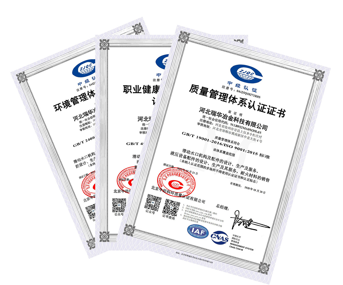 審核專家組通過溝通、現(xiàn)場查看、資料審閱等方式,了解瑞華公司的管理運(yùn)行模式,經(jīng)過兩輪的嚴(yán)格審核,達(dá)到符合***體系文件相關(guān)標(biāo)準(zhǔn)規(guī)定,并頒發(fā)了“三體系”相關(guān)資格證書。